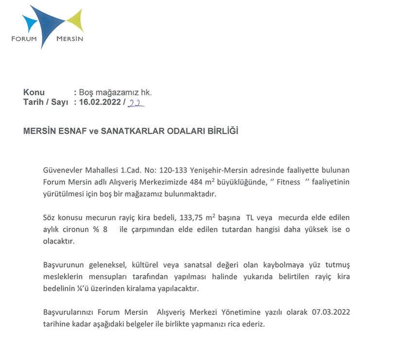 Forum Mersin ve Kayseri’nin Kira Katkısı Hesabı