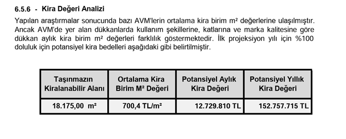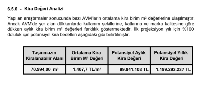 Güncel değerleme raporlarına göre sırasıyla metrekare kira fiyatları 1.400 ve 700 TL olarak bildirilmiş. Forum Mersin ve Kayserinin ne Bursa kadar yüksek ne de Samsun kadar düşük olacağını düşünüyorum.